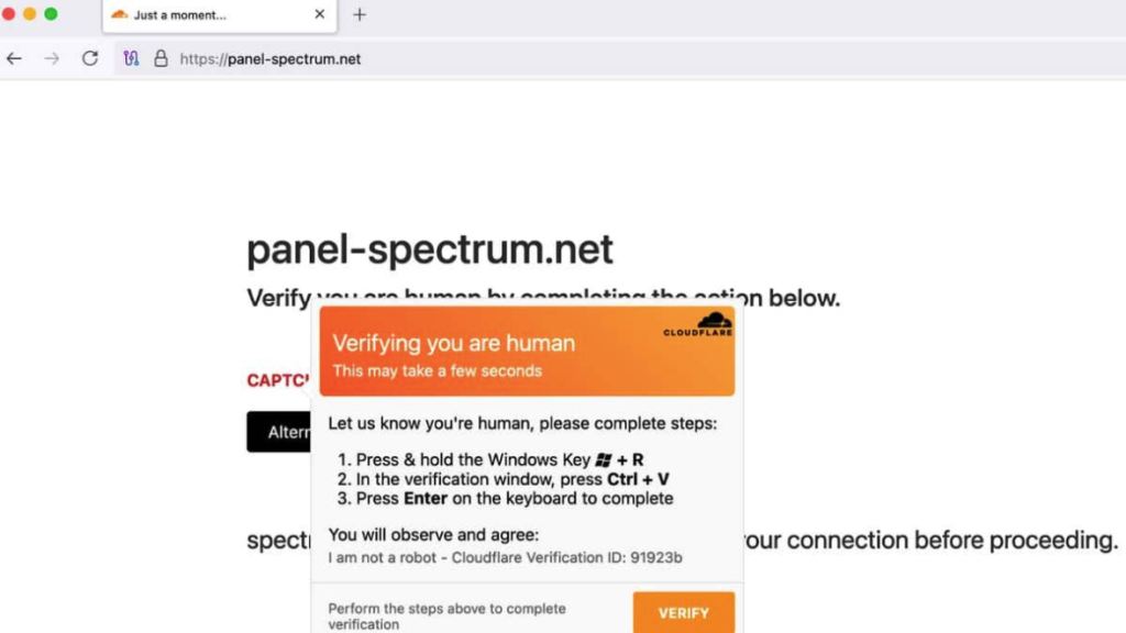 Campania, analizată în această săptămână de cercetătorii LevelBlue, începe când victimele vizitează site-uri web compromise care încarcă pagini frauduloase de verificare de securitate ce imită sistemul de verificare Turnstile al Cloudflare. CAPTCHA-ul fals instruiește utilizatorii să apese Windows Key + R pentru a deschide fereastra Run, apoi Ctrl + V pentru a lipi o comandă copiată în secret în clipboard-ul lor, și în final Enter pentru a o executa. Utilizatorii cred că completează o verificare de rutină când, de fapt, lansează malware.