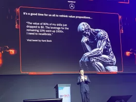 Ultimul discurs pe care l-am auzit a fost cel al lui Timo Elliott, Global Innovation Evangelist la SAP. Într-adevăr tehnologia și inovația au nevoie de o persoană capabilă să răspândească vestea bună. Timo Elliot a ținut un discurs captivant și exhaustiv, conducându-și audiența progresiv în lumea transformării digitale. Discursul său mi s-a părut cu adevărat concludent. A oferit o imagine de ansamblu a întregului eveniment. S-a discutat în această sesiune despre beneficiile inovației și a găsirii de noi căi de lucru, în proiectele inovatoare este nevoie de adaptare la piața în schimbare, de înțelegerea oamenilor și a nevoilor lor actuale, operarea cu o mare cantitatea de date conduce spre o mai bună înțelegere, iar un ajutor în analizarea unor mari cantități de date este chiar Inteligența Artificială Generativă singura în stare să categorizeze și să analizeze cantități uriașe de date.